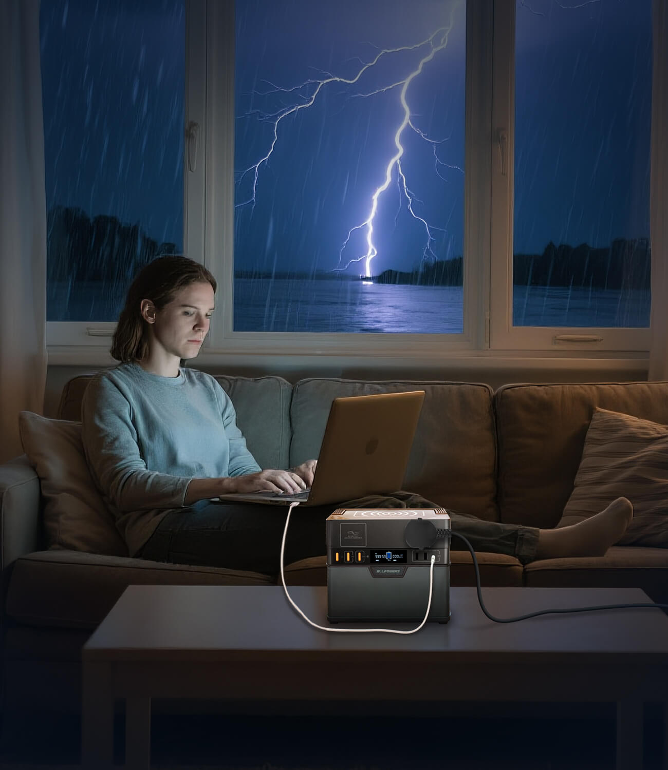ALLPOWERS Portable Power has 4 ways to charge the emergency battery. It takes 1.5 hours to fully charge the portable power station using an AC 230V wall socket; about 3-4 hours using a solar panel in direct sunlight (100W max); about 3-4 hours using a 12V/24V car cigarette lighter socket; about 1 hour using AC charging and solar panels together (300W max).