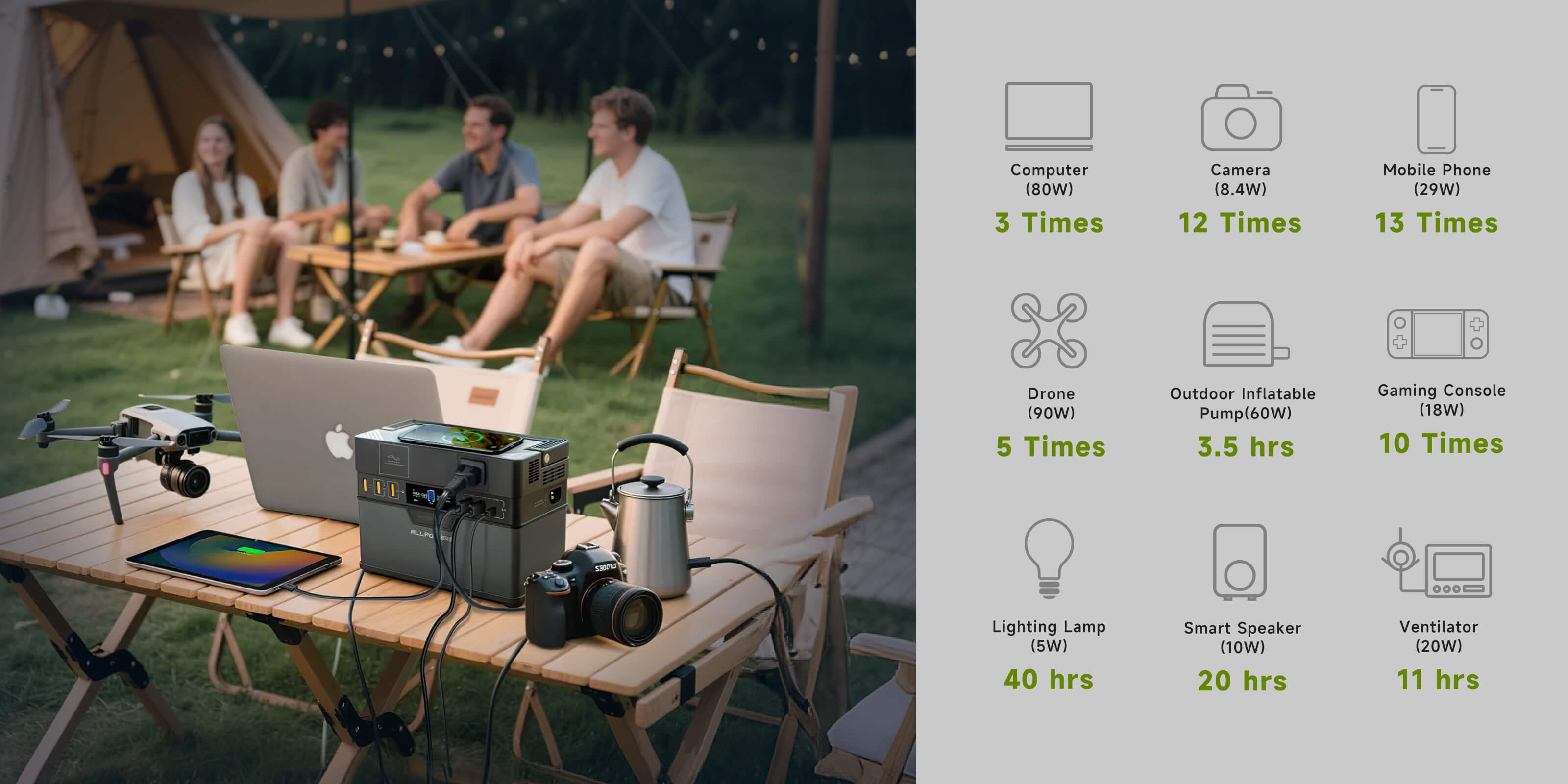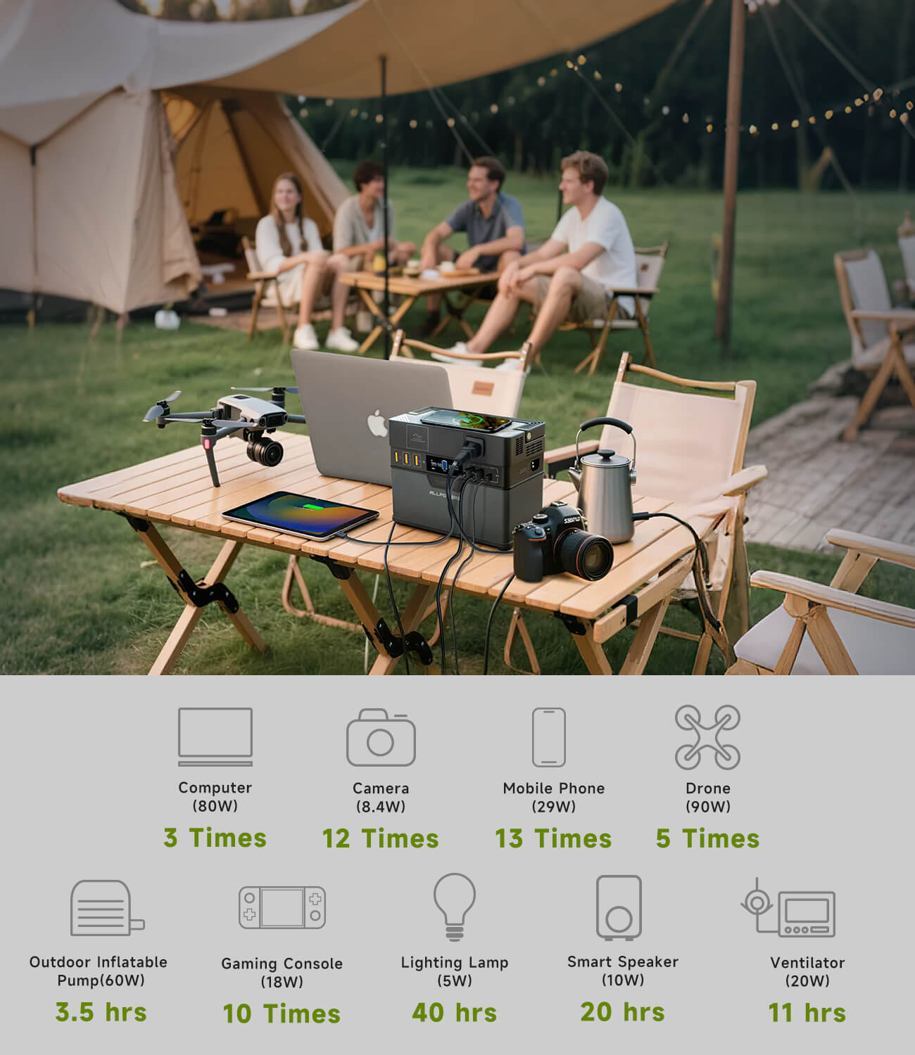 The backup battery power supply is powerful enough to meet different kinds of electricity demands usage for emergency, outdoors, home, travel, camping, road trips. Portable power source supports charging mobile phones, laptop, computers, GPS, walkie talkies, cameras, drones, holiday lights, in-car appliances and more. Portable power station use pure sine wave inverter, which working faster, quieter, safer and more stable.