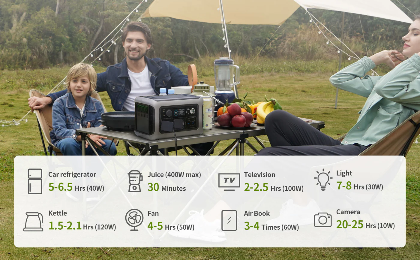 Compatible with rated power is less than 600W and peak power is not more than 1200W. Common electrical appliances are applicable, such as computers, mobile phones, fans, juicers, car refrigerators, drones, bread machines, televisions, etc.