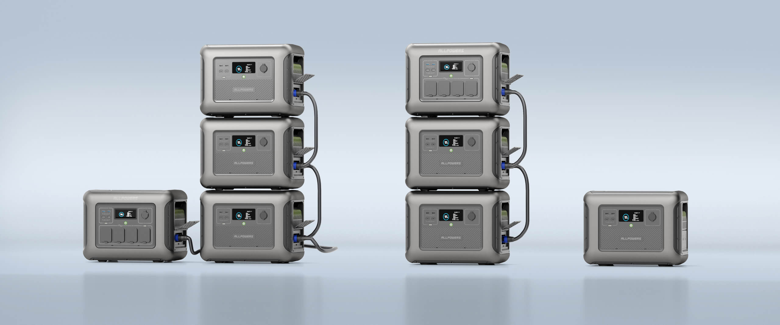 - Compatible with R1500 for a maximum of 4,608Wh capacity. (1*R1500+3*B1000 or 1*R2500 +3*B1000)