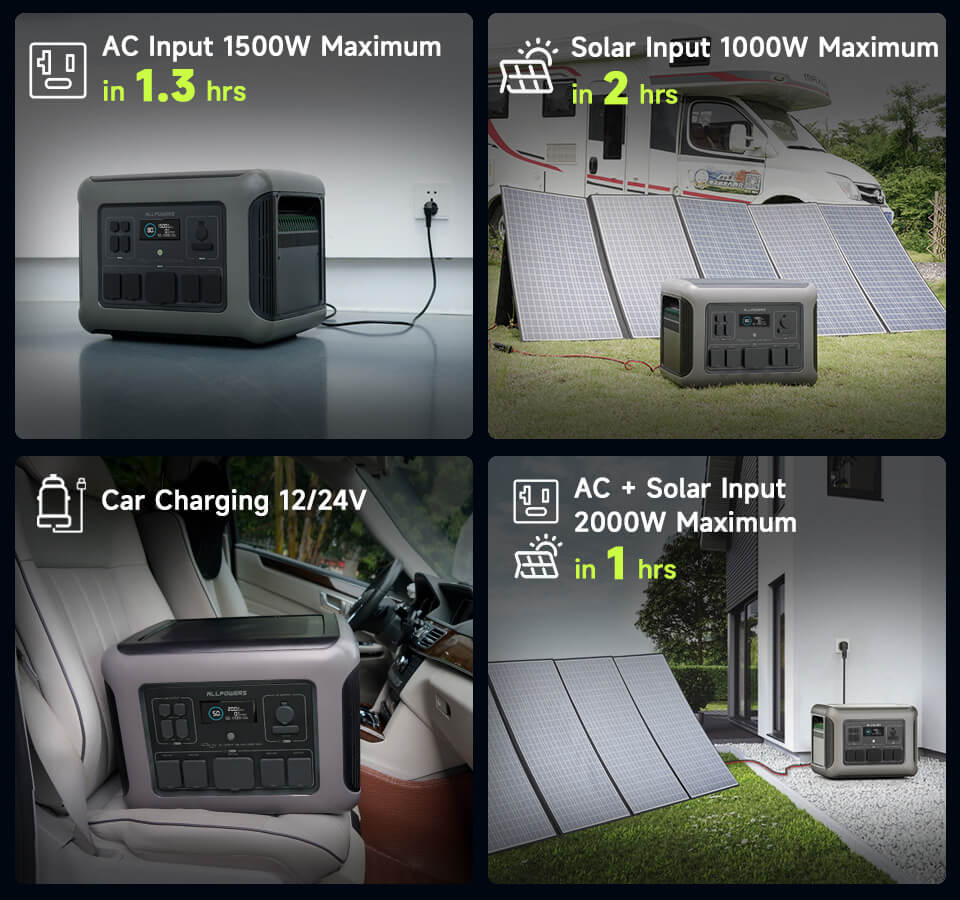 - Maximum 2000W dual input in 1 hour (AC + Solar);