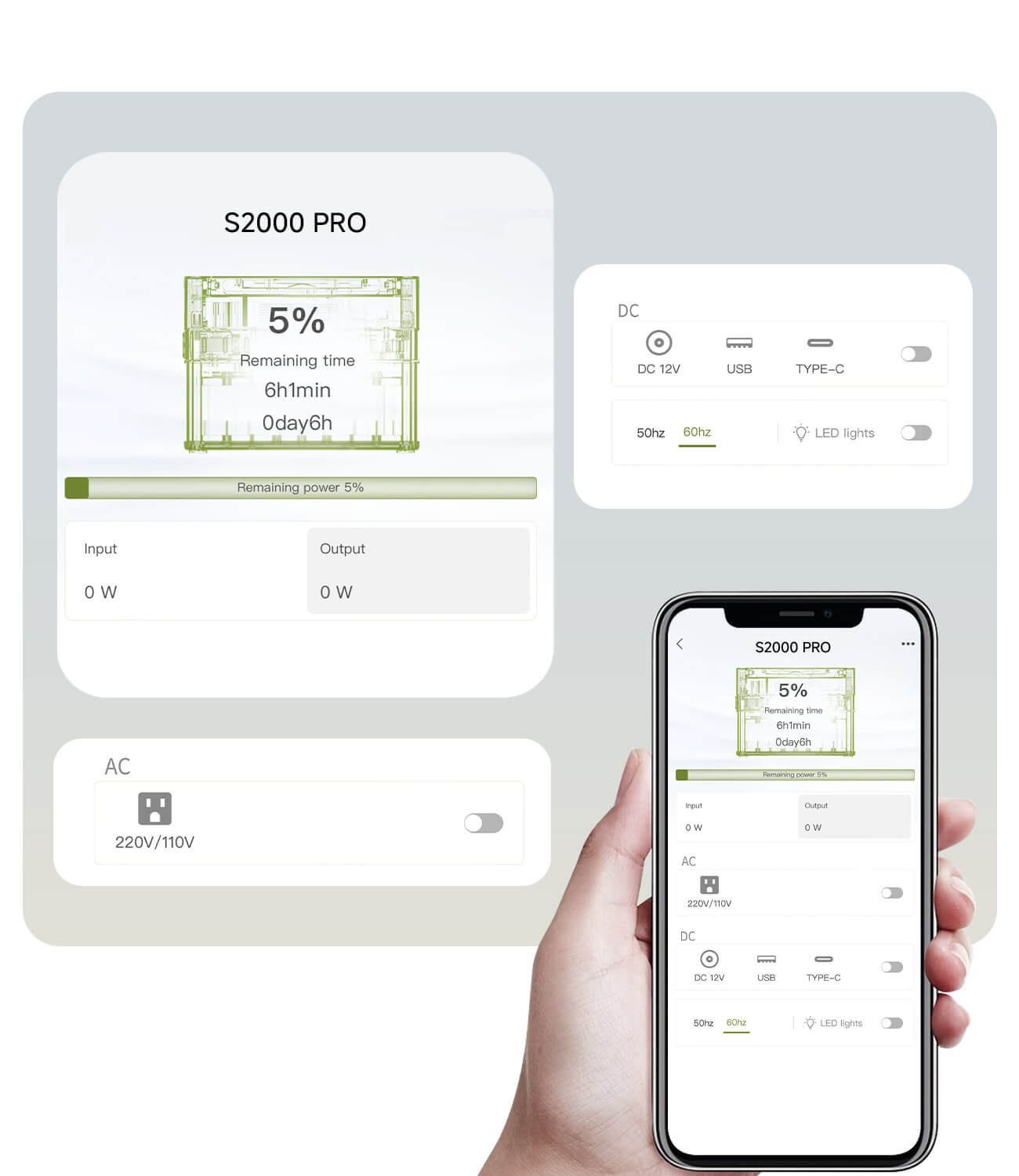 The S2000 pro has a remarkable 1500Wh capacity and 2400W output, making it capable of running 99% of home appliances. You may use it to power the majority of tools and appliances for outdoor activities and domestic crises, giving you confidence in any situation.