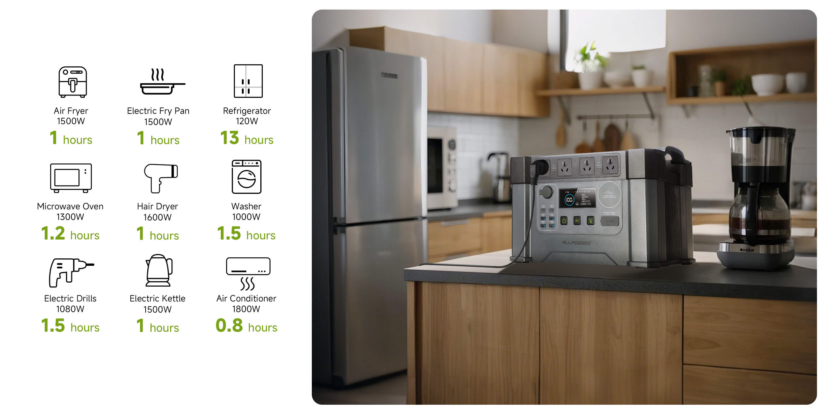 You are always well prepared for any power outages with S2000 pro. This is the best backup source for a power outage. It is quiet in operation and maintenance-free. Finally it can give you enough power to run your essential home appliances. Such as refrigerator, coffee maker, electric grill, electric saw etc.Let you live without worries, no anxiety about power outages.