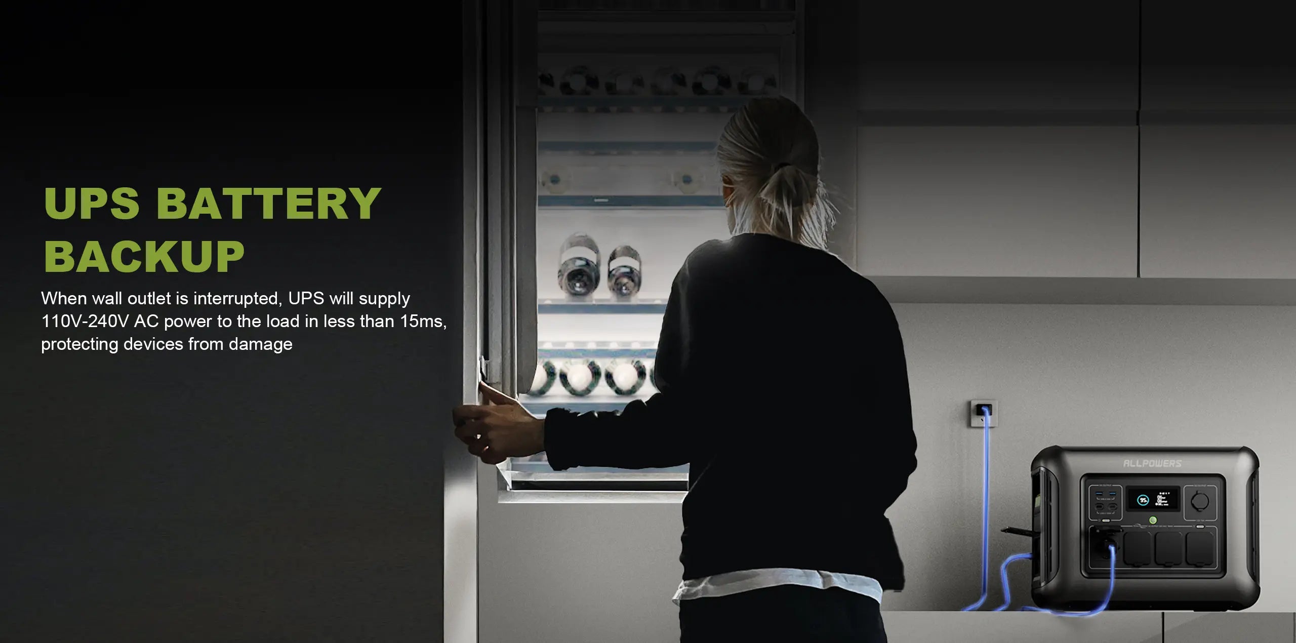 The R1500 portable power station features uninterrupted UPS power supply with a switching time of 15 milliseconds during a power outage, protecting your desktop computers, file servers and other sensitive devices from data loss or damage. And when there is no one at home, in the event of a sudden power outage, the normal power supply for CPAP, aquarium supplies, refrigerators, wine cabinets, etc. can be guaranteed for a long time.