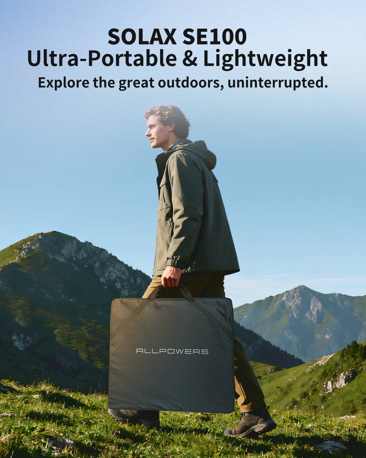 The ALLPOWERS SOLAX SE100 is a high-efficiency, portable 100W solar panel designed for versatility and reliable off-grid power. Its robust, foldable design integrates high-conversion monocrystalline cells.Quickly charging power stations, generators, and 12V batteries via included industrial-grade connector. Ideal for camping, RV trips, or emergency backup, it features a convenient kickstand for optimal sun alignment. The durable, waterproof construction ensures performance in various environments, making it an essential tool for sustainable energy on the go.