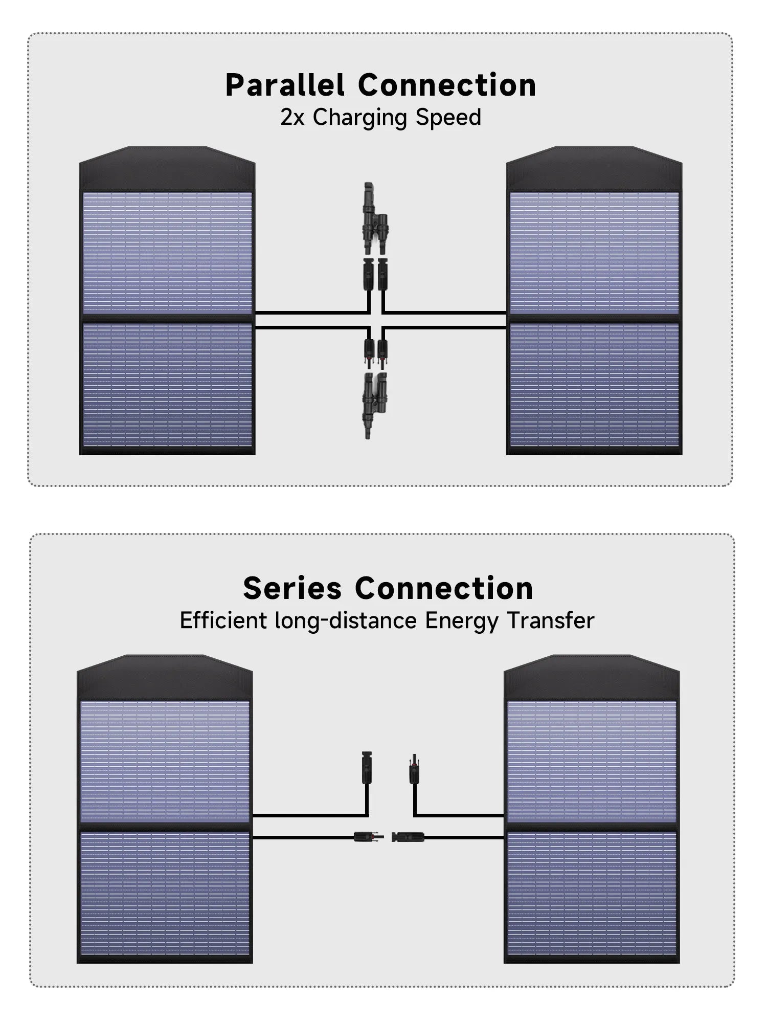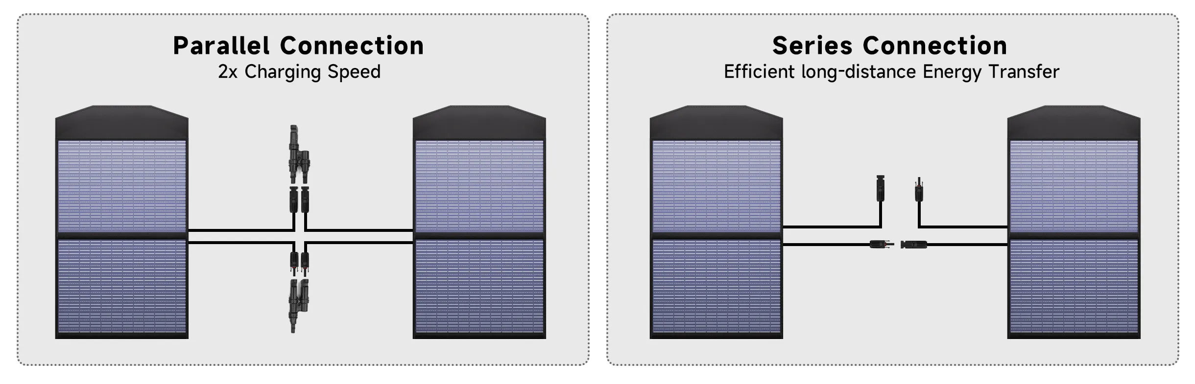 By connecting multiple solar panels in parallel or in series, you can get higher power and voltage.