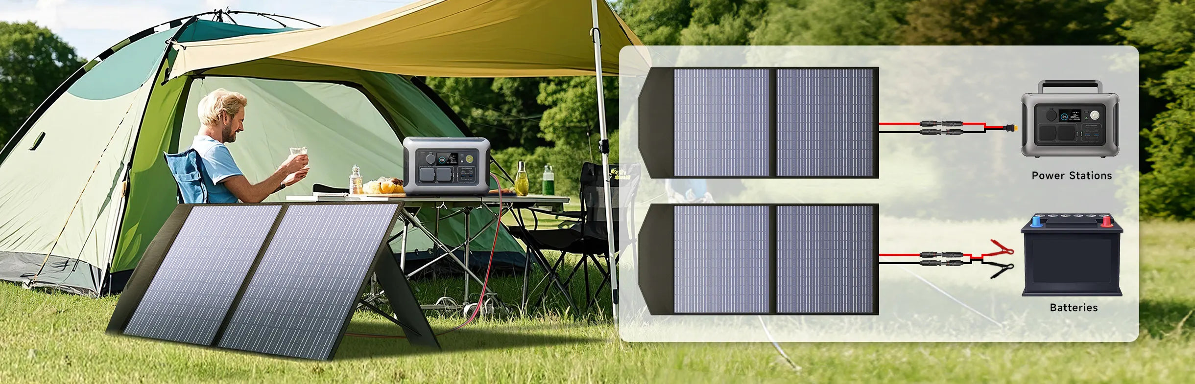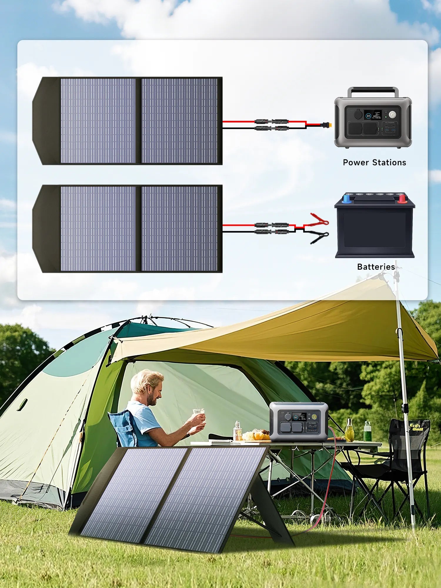ALLPOWERS 100W foldable solar panel is compatible with most solar generator/portable power station on the market. The portable solar panel kit Includes different sizes of connectors for portable generator( Solar Connector to Anderson / Solar Connector to DC )