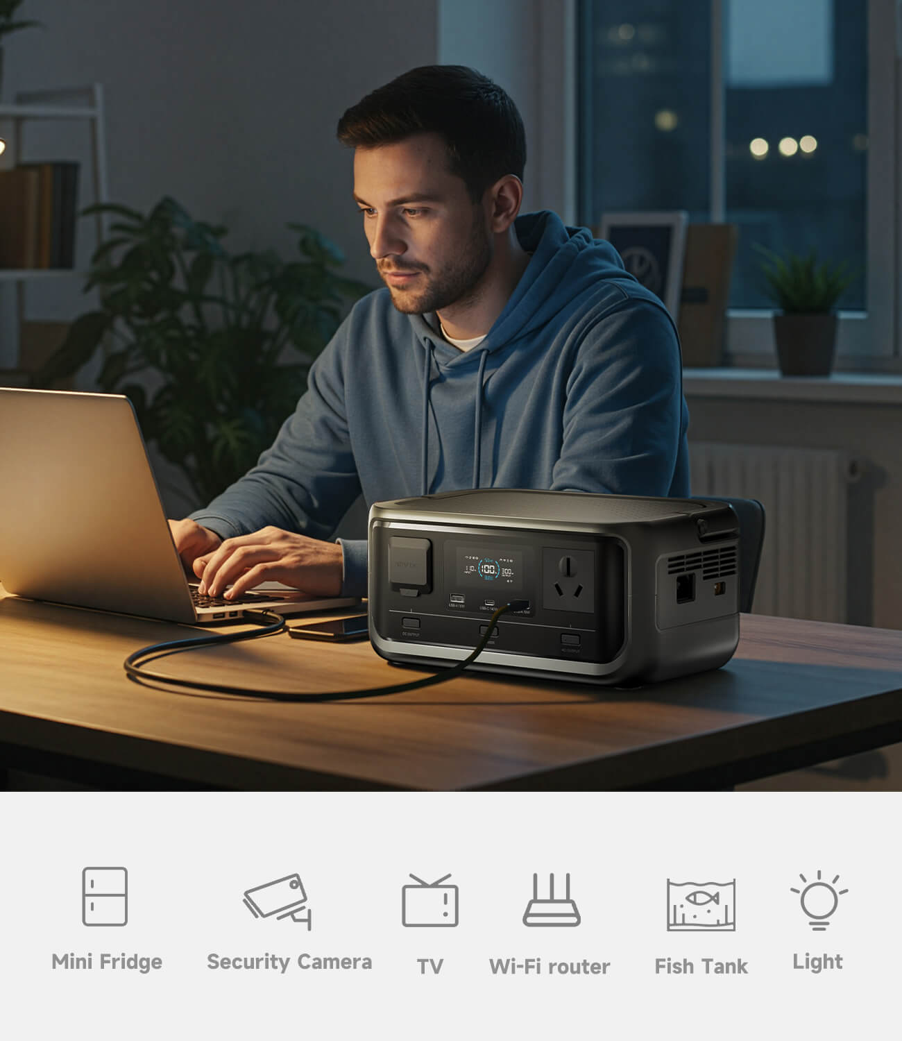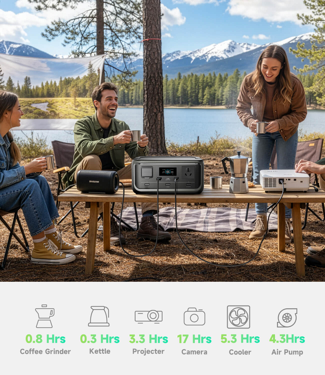 The VOLIX P300 lets you explore a wider world. This 256Wh portable power station can charge your gear even without a power grid. Power your adventures by using solar panels to charge it with sunlight. Whether you're picnicking or on a road trip, it provides reliable, quiet, and emission-free power.