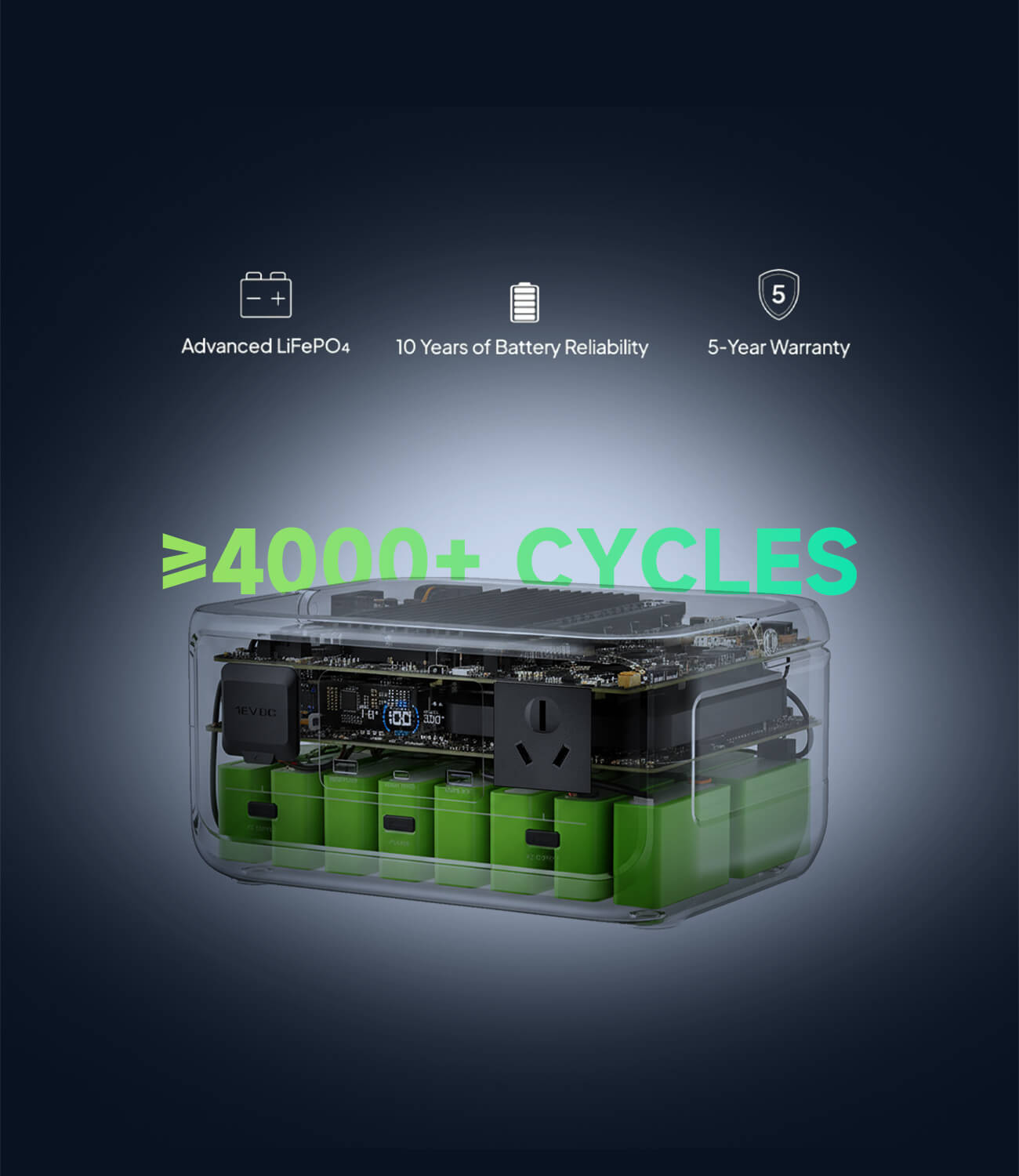 With 4000+ cycles, enjoy reliable power for over a decade of adventures.An industry-leading battery life that lasts for years
